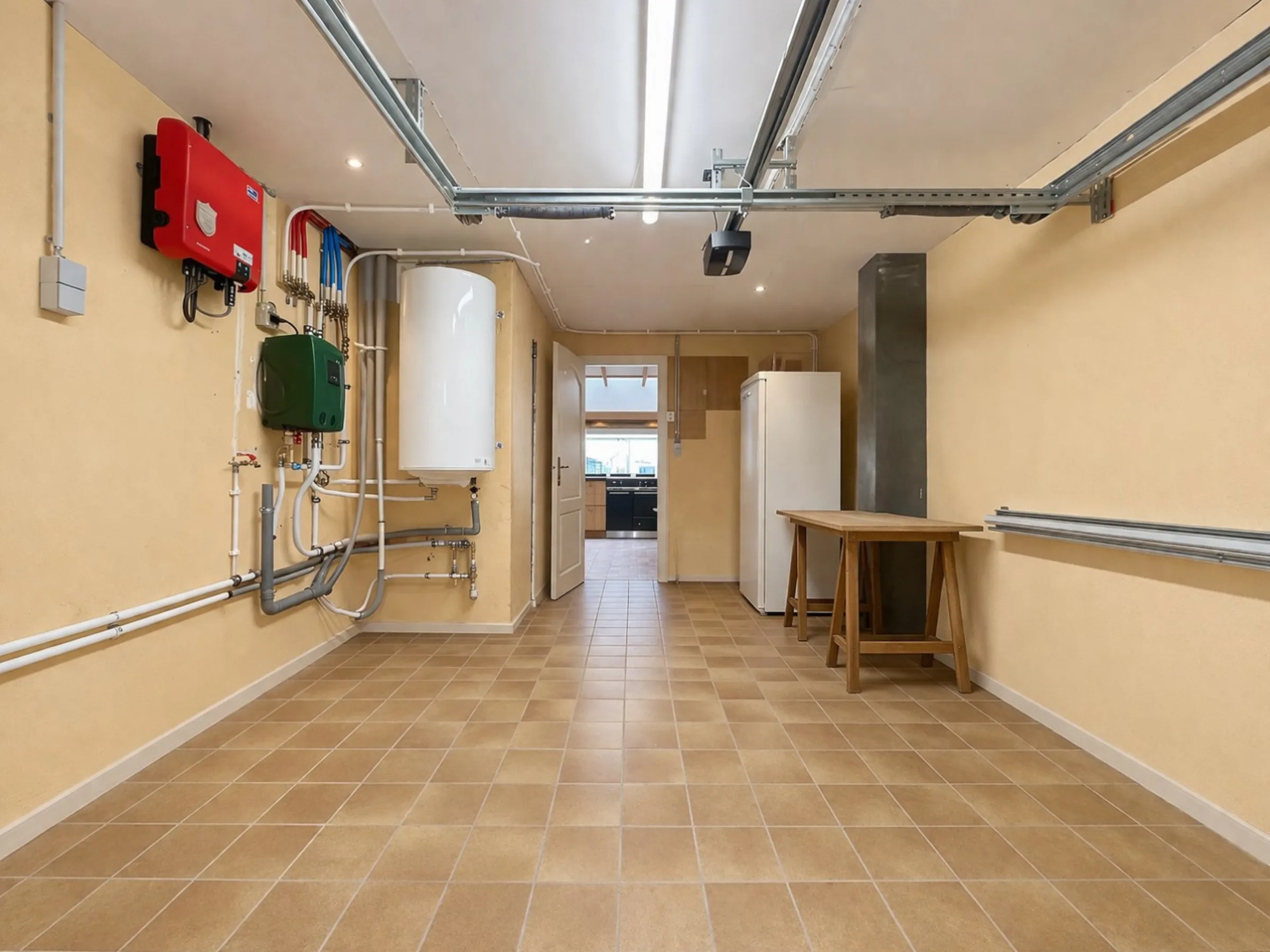Via de oprit bereik je de garage en inkomhal met gastentoilet. De lichtrijke leefruimte met open keuken vormt het hart van de woning. De luxekeuken is uitgerust met een Lacanche fornuis (kookplaat, grill, oven, bordenwarmers) en biedt samen met de leefruimte een mooi zicht op de tuin. Airco zorgt voor comfort, zomer én winter. (zonnepanelen aanwezig)