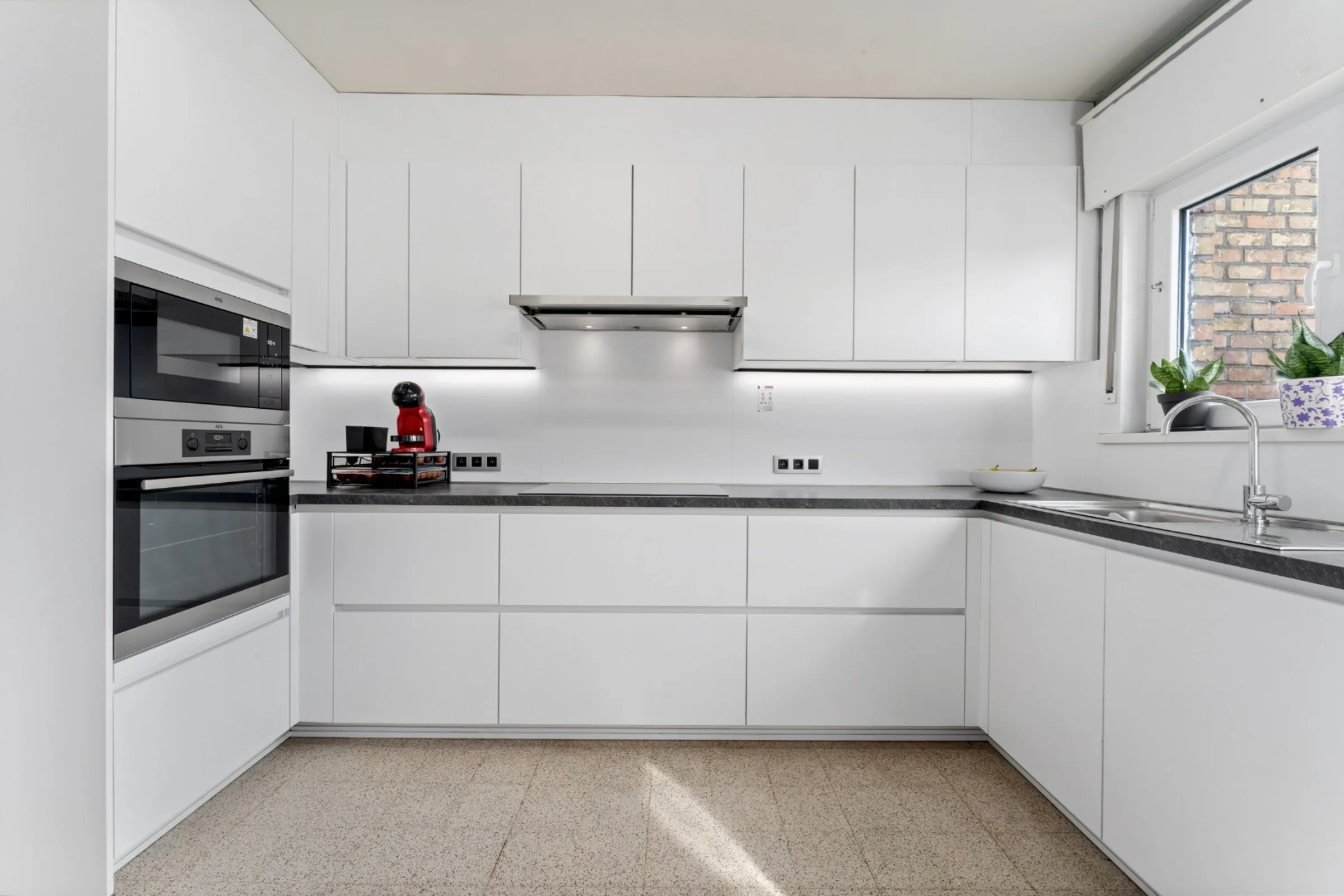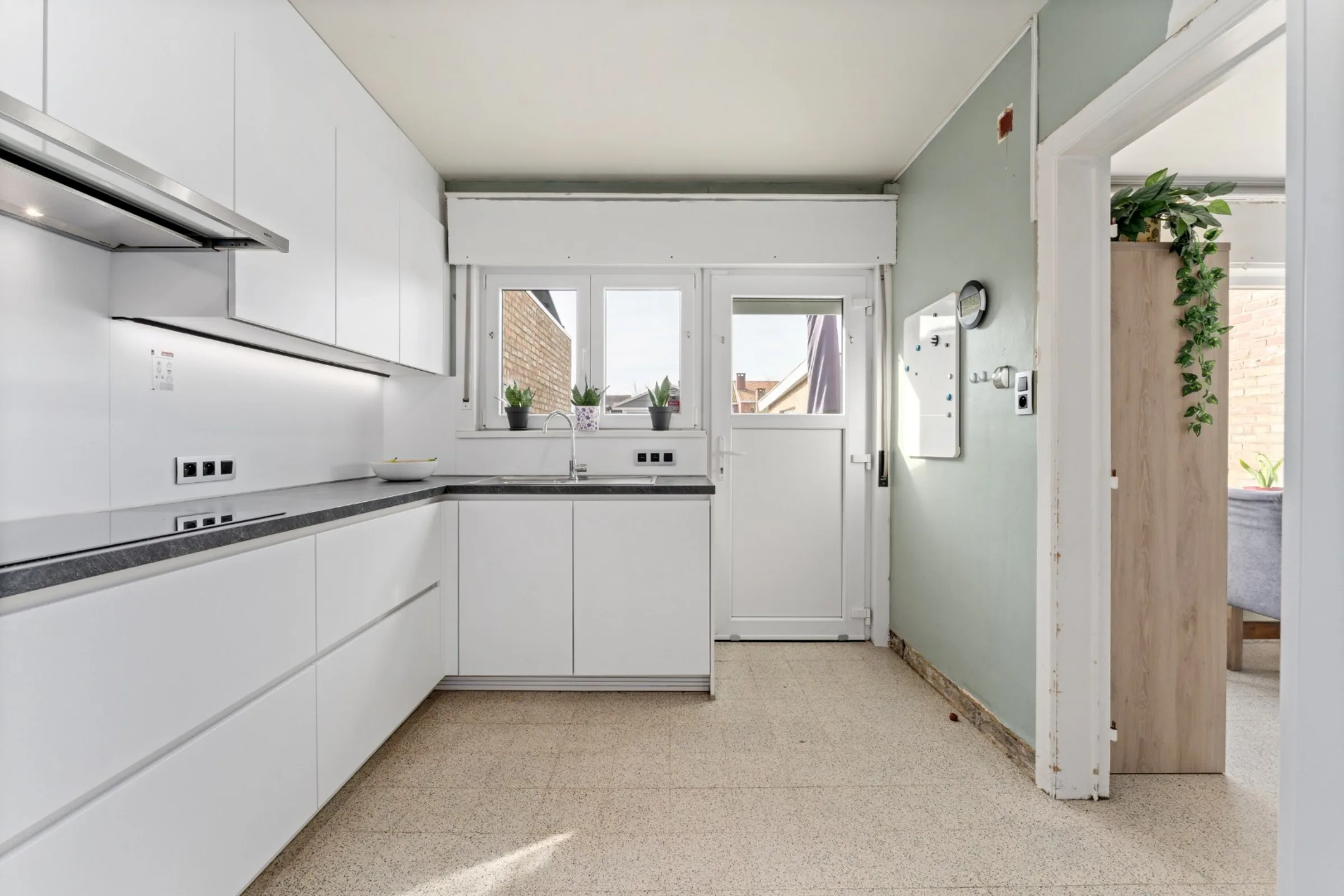 In de inkomhal bevindt zich het gastentoilet. De vernieuwde keuken (2022) is uitgerust met alle nodige toestellen en veel kastruimte. Aansluitend vind je de lichtrijke leefruimte met zicht op de tuin. Binnen en buiten lopen hier mooi in elkaar over, wat zorgt voor een aangename woonbeleving