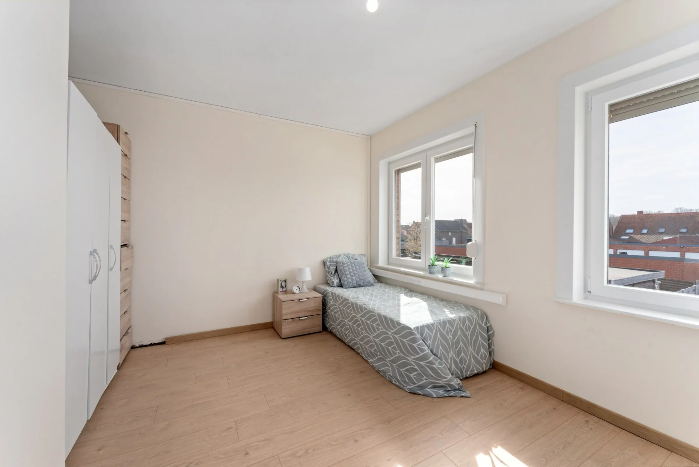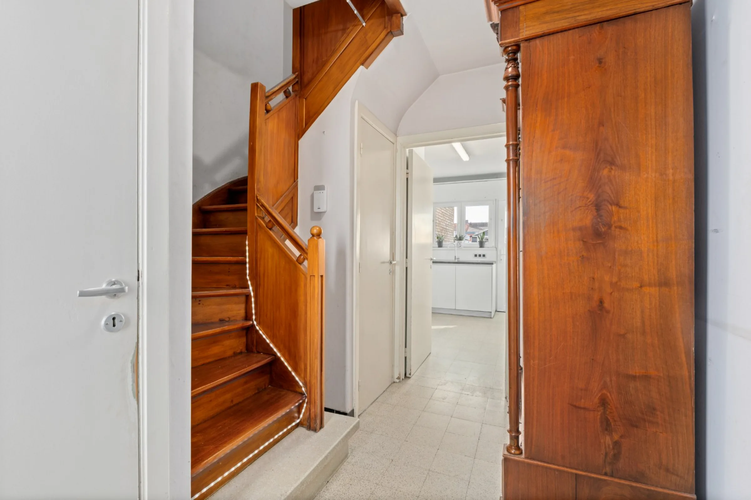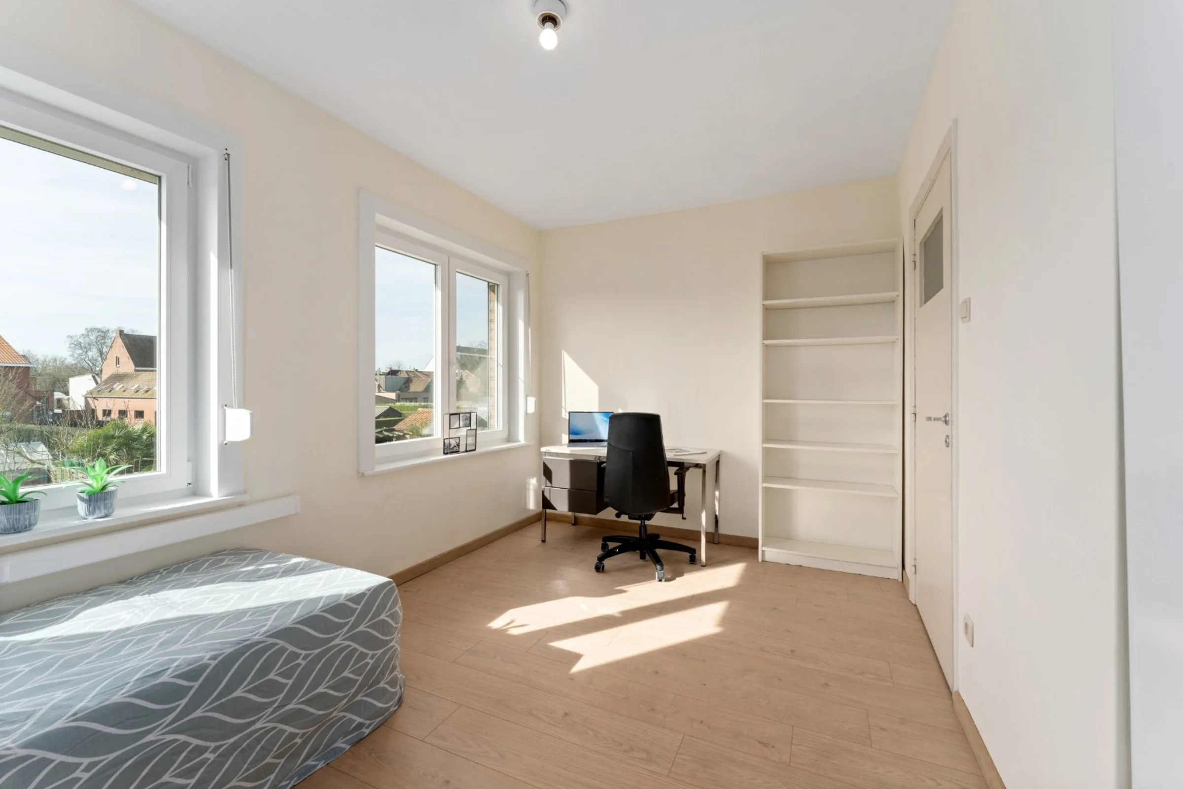 Op de eerste verdieping zijn er drie slaapkamers: twee ruime kamers en een derde die perfect dienst kan doen als bureau, kinderkamer of dressing. De badkamer is functioneel ingericht met lavabo en douche. De zolder biedt extra bergruimte en het dak werd recent vernieuwd en geïsoleerd (2025).