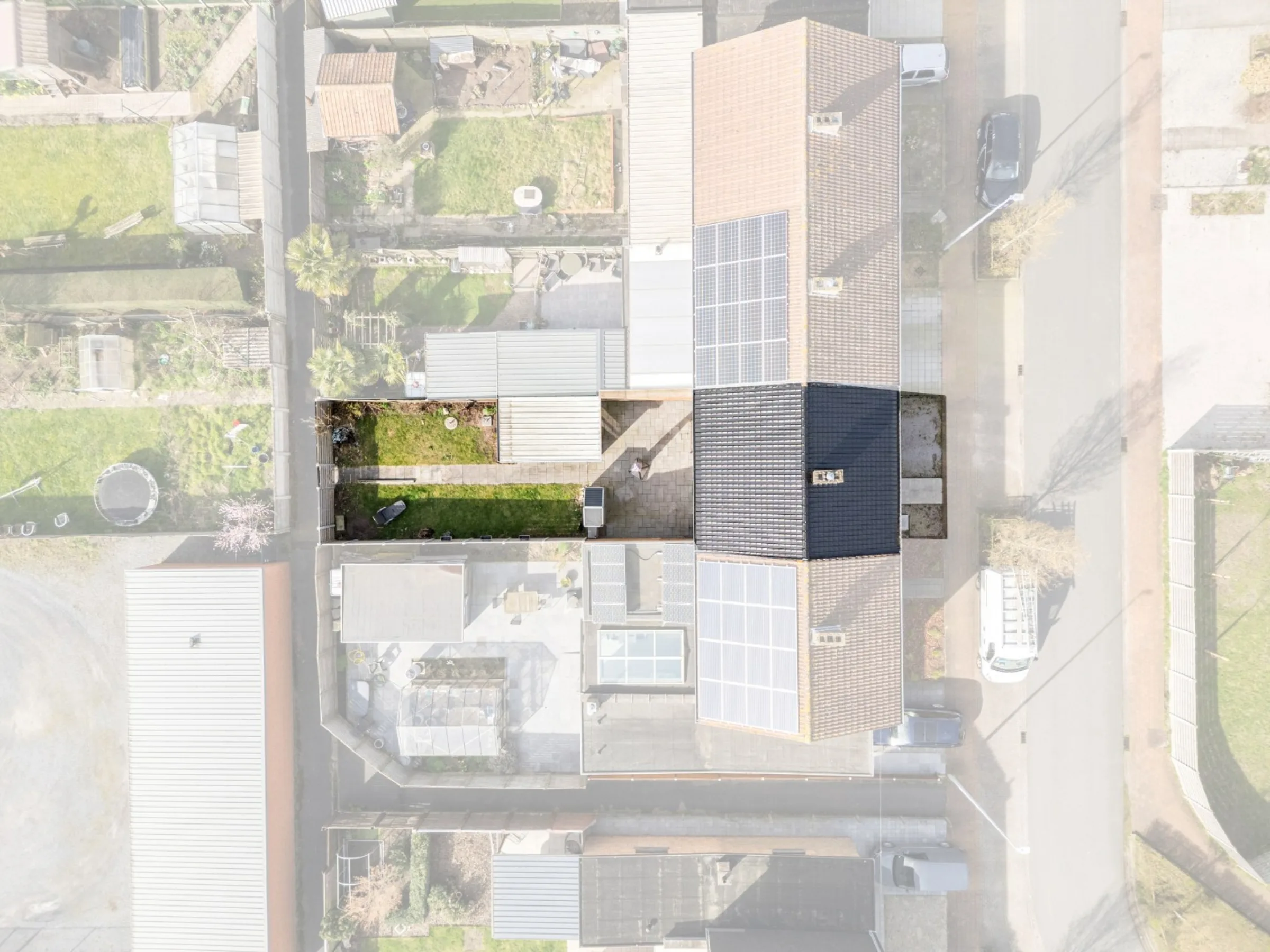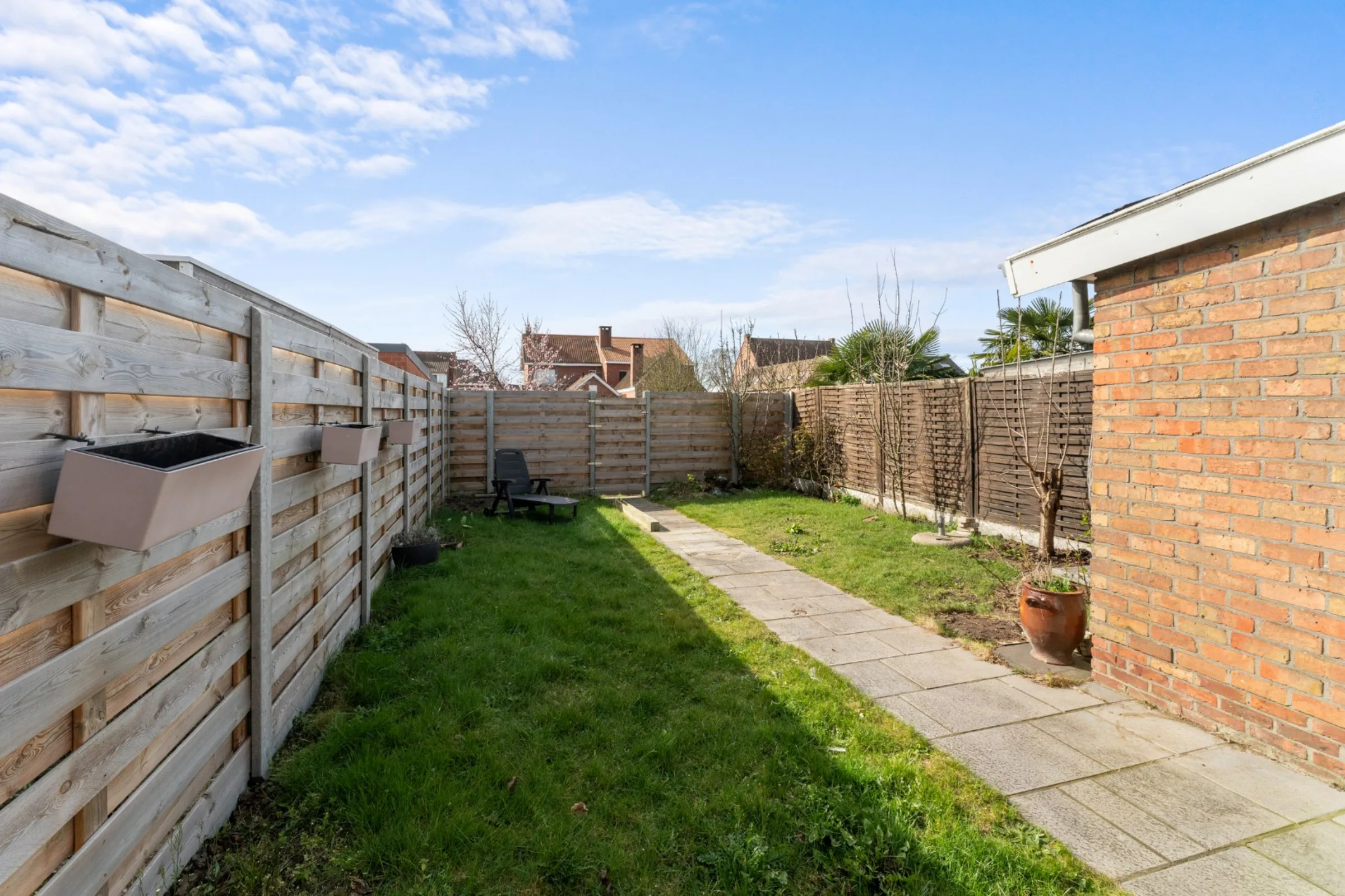 De zonnig tuin is een echte troef. Er is een bijgebouw en een praktische achteruitgang. Ideaal om fietsen of tuinmateriaal makkelijk achteraan binnen te brengen.